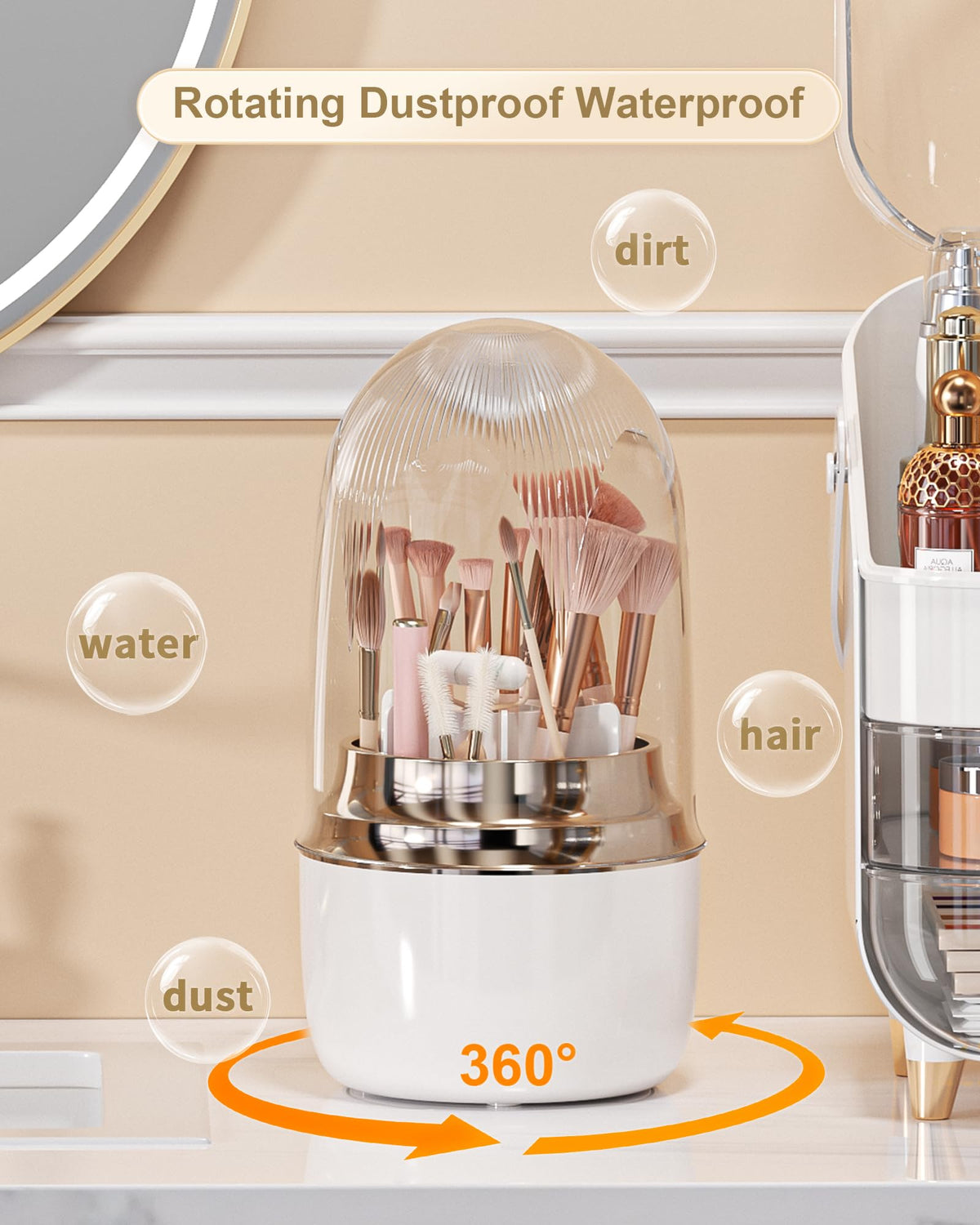 Anylady Makeup Brush Holder for Vanity - 360 Rotating Makeup Brush Organizer (Thicken Upgraded), Toothbrush Holder with Cover, C