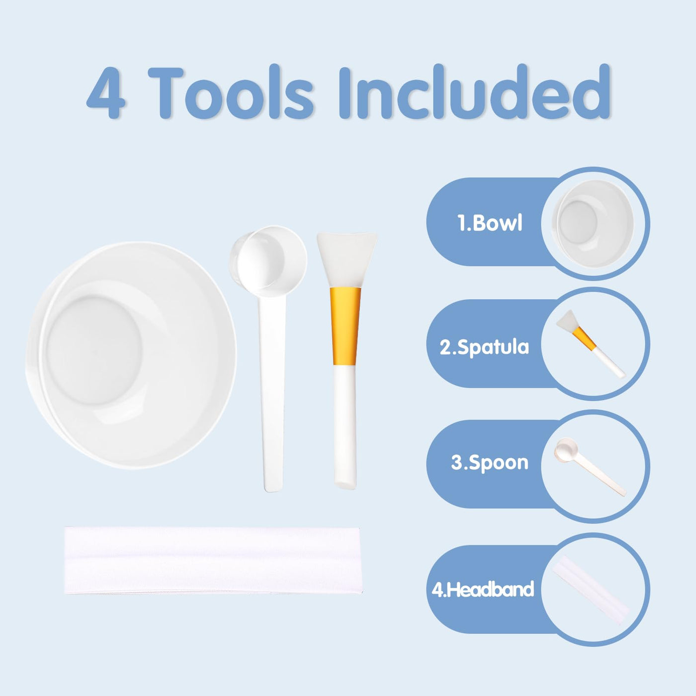 Complete Face Mask Mixing Tool Kit: Comes with a face mask applicator brush, measuring spoon, mixing bowl, and elastic headband for a professional jelly facial mask experience at home.