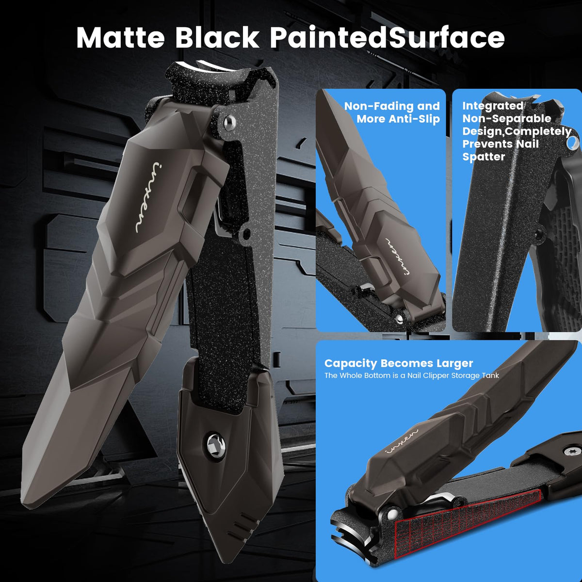 Inxen Nail Clippers For Men With Catcher, Sharp Heavy Duty No Splash Self-Collecting Nail Clippers, Stainless Steel Nail Clipper