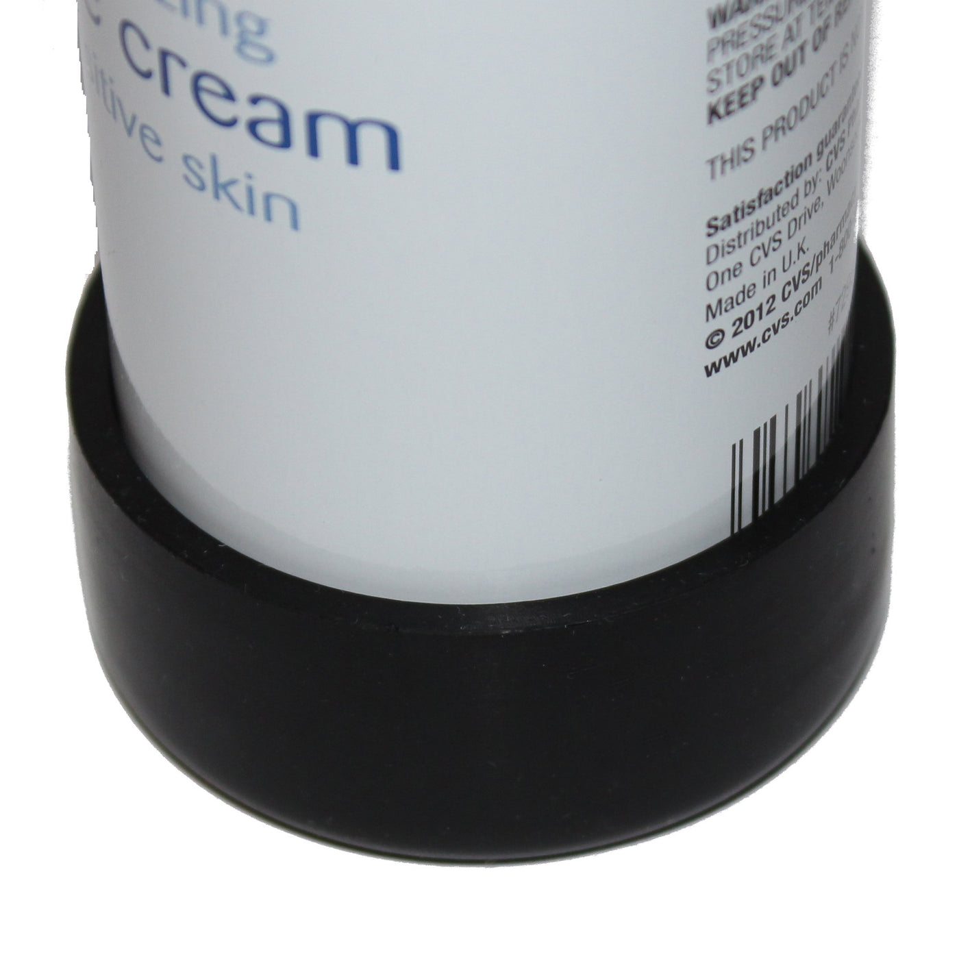 Rust-O-Less is a silicone rubber cap that firmly fits around shaving cream cans and prevents rust ring stains formed in one's shower or bathroom countertop. Rust rings often form when water mixes with the metal base of shaving cream cans.