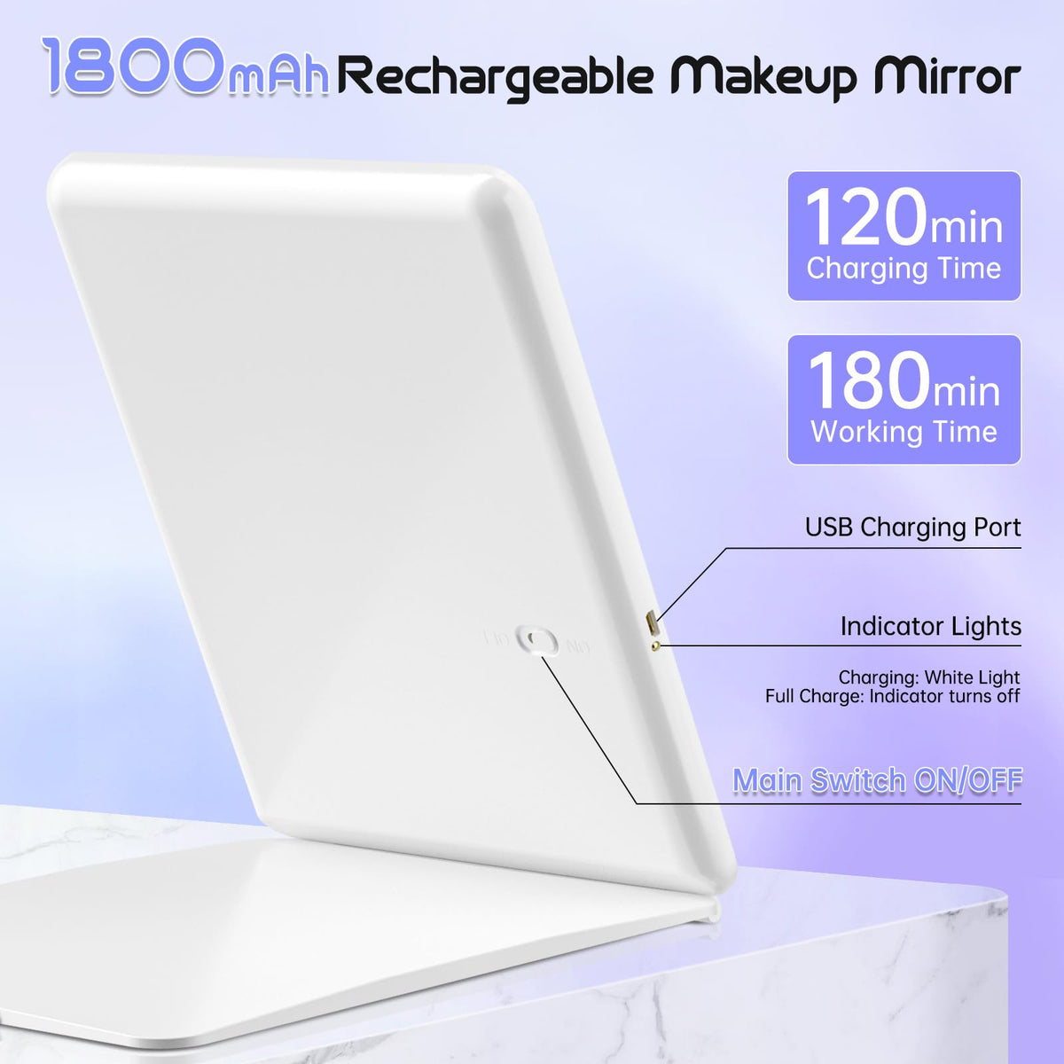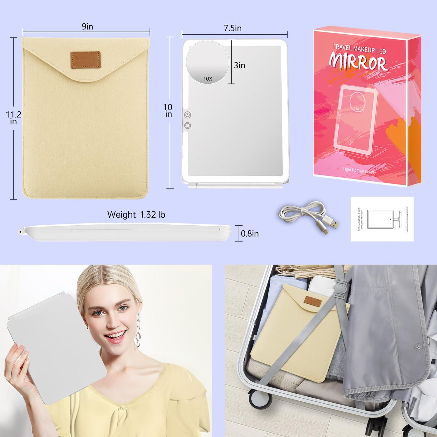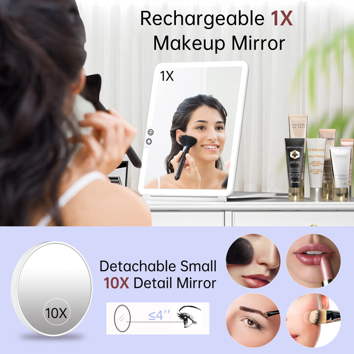 Funtouch Large Rechargeable Travel Makeup Mirror With Light, Portable Makeup Mirror With 10X Magnifying Mirror 3 Lighting Modes,