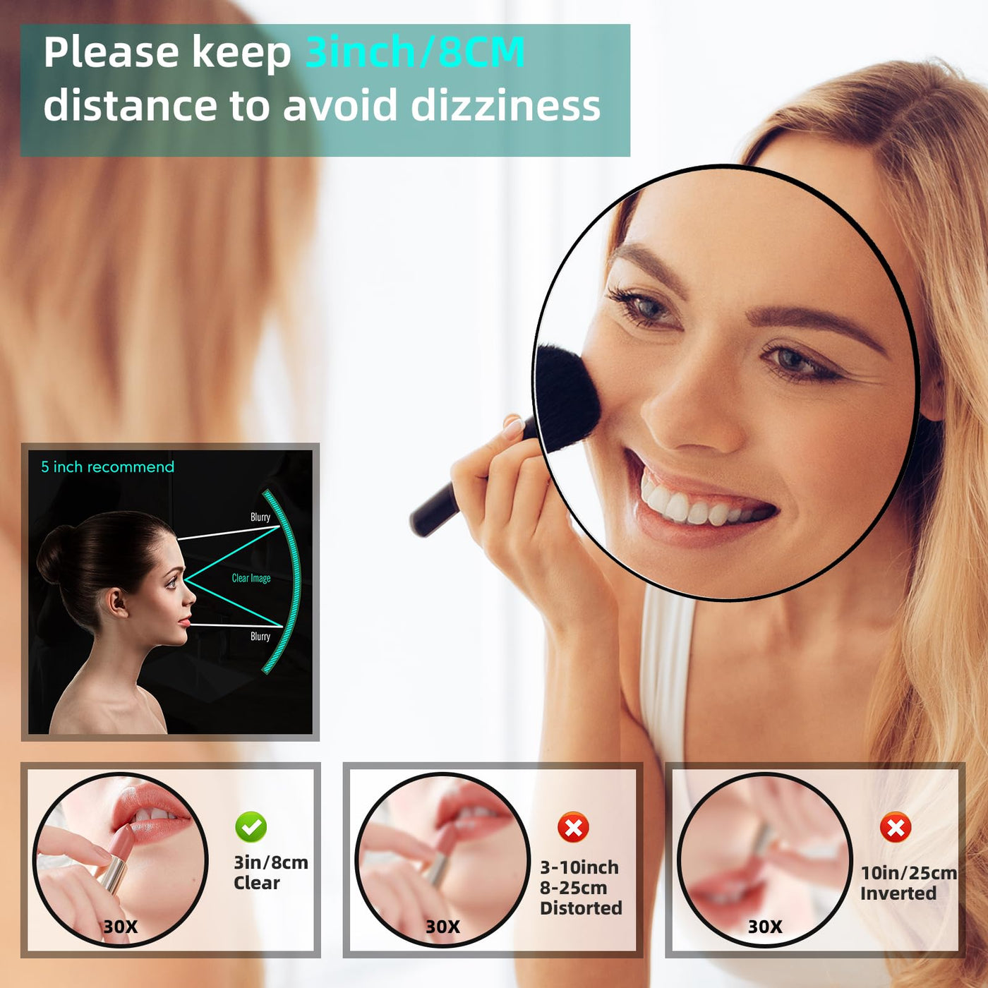 Suupvaor 30X Magnifying Mirror with 3 Suction Cups, Large 6inch Magnified Mirror 30X Travel Round Makeup Mirror with High Magnif