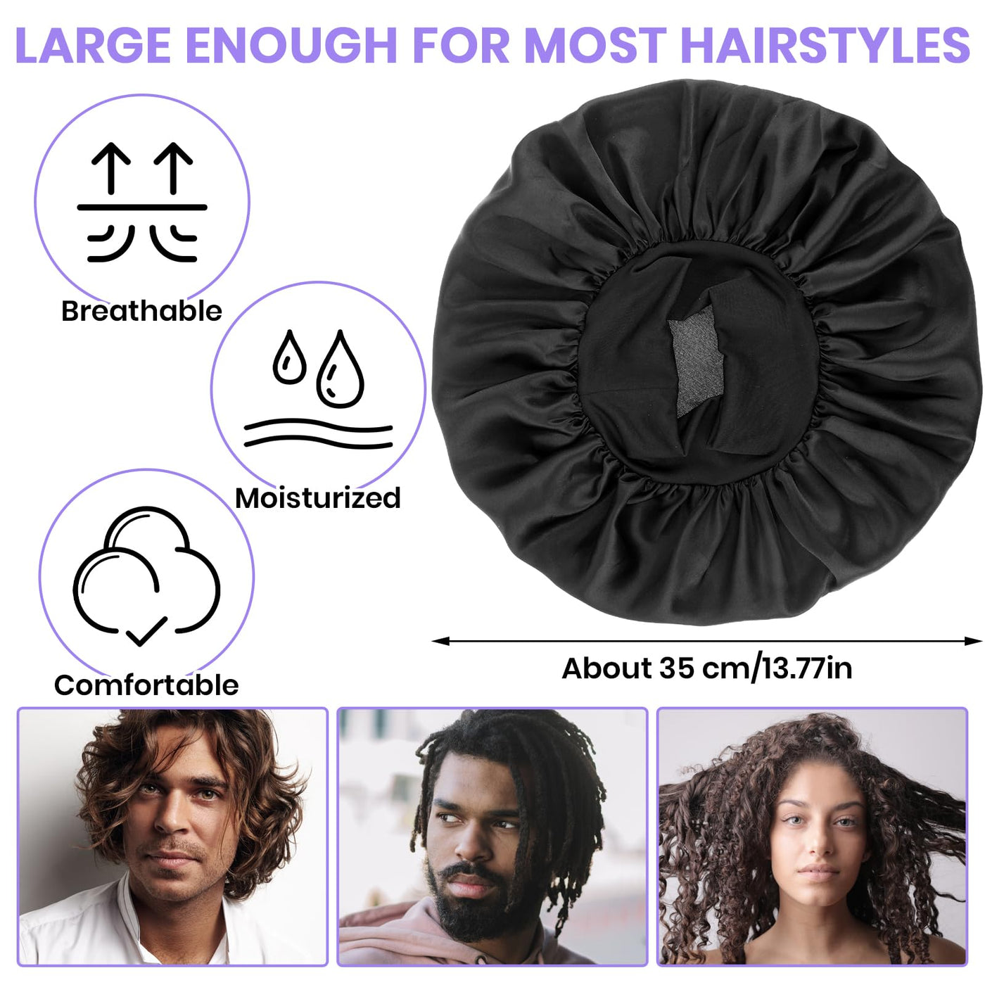Wllhyf Silk Bonnet For Men, Satin Bonnet Double Layer Elastic Band Silk Sleep Cap Black Soft Adjustable Hair Cap Hair Wrap Large