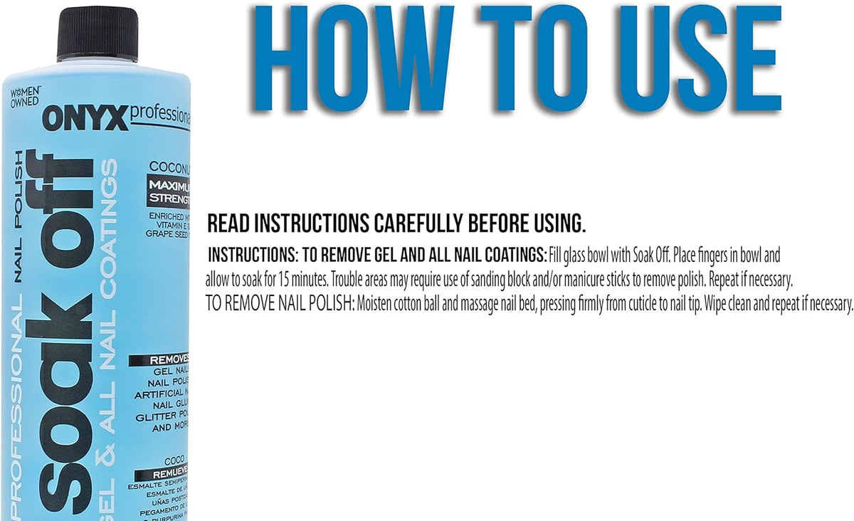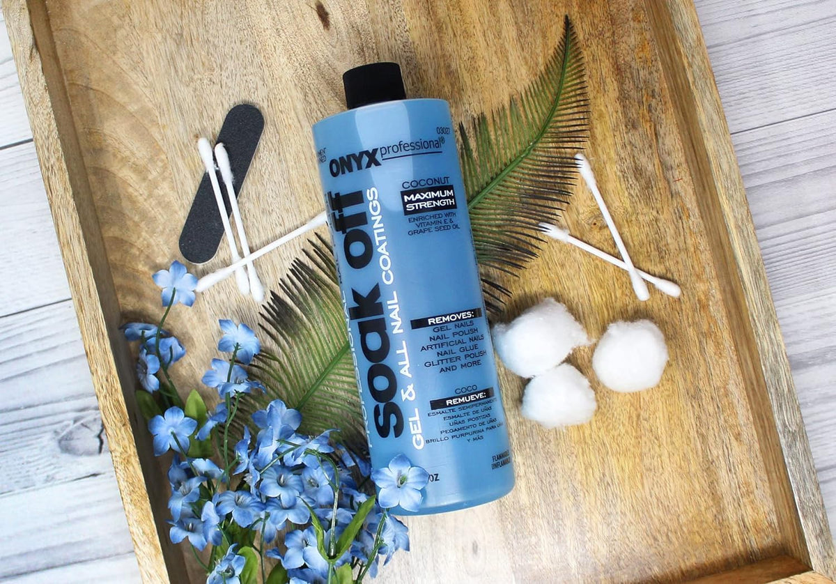 Onyx Professional Coconut Scented Nail Polish Remover With Nail File, 16 Oz, Maximum Strength Soak Off Gel Polish Remover, Vitam