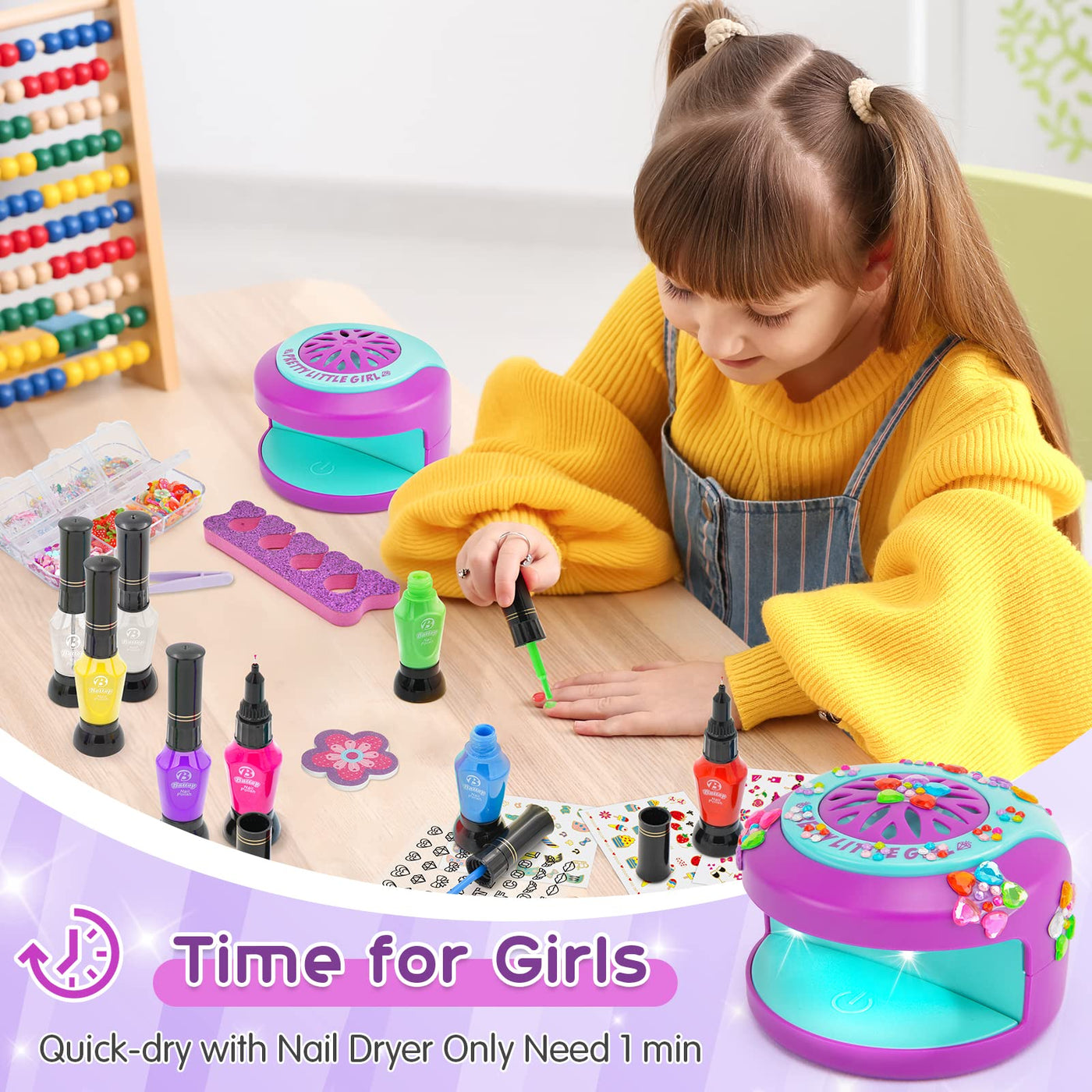 Battop Kids Nail Polish Set For Girls, Nail Art Kit For Girls With Nail Dryer & 2 In 1 Water Based Nail Polish & 3D Decoration &