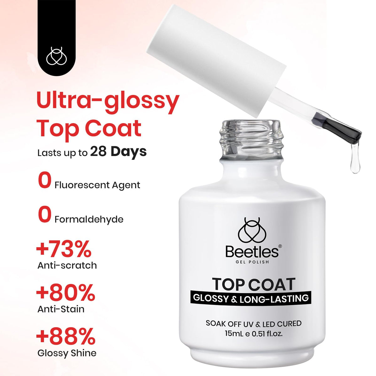 - Q: How do I use the no wipe top coat? A: To use the no wipe top coat, first apply the desired color gel to your nails, then apply a layer of the top coat. Cure it under a UV/LED lamp for about 60-120 seconds. This top coat provides a protective layer against scratches and chips, ensuring long-lasting shine.