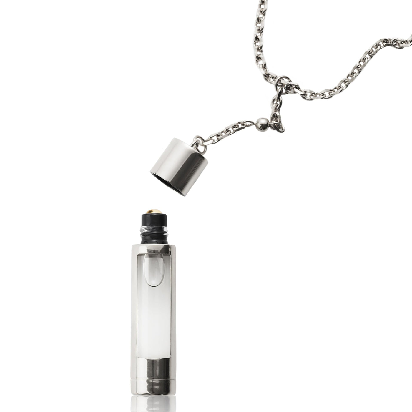 The Piece - Silver By Ncp For Unisex - 3 Pc 2 X 4.9Ml Olfactive Facet -701 Leather And Vetiver Edp Roll On, Necklace