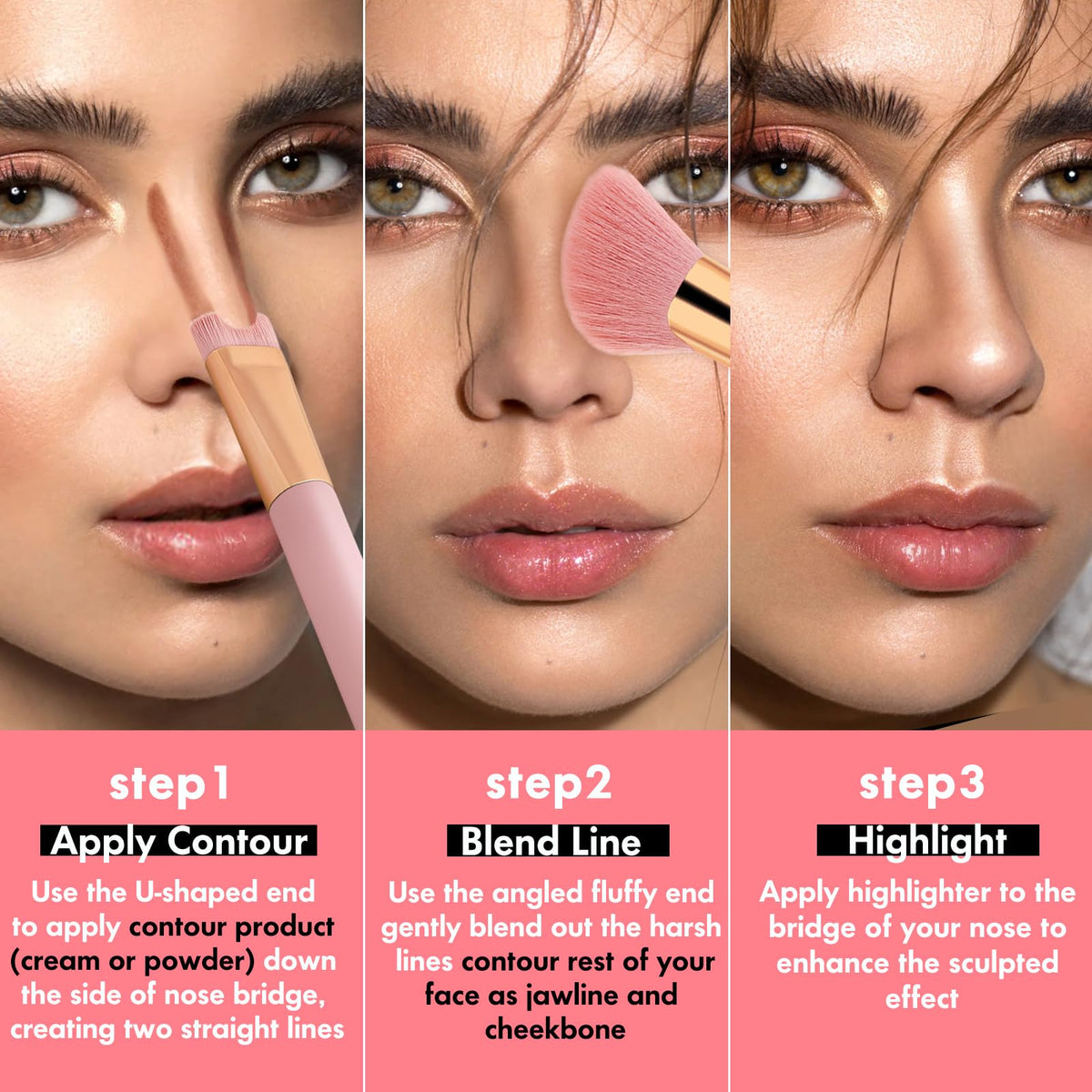 2-In-1 Nose Contour Brush, Dual-Ended U-Shaped & Angled Fluffy Brush, Makeup Contour for Nose Sculpting and Defining