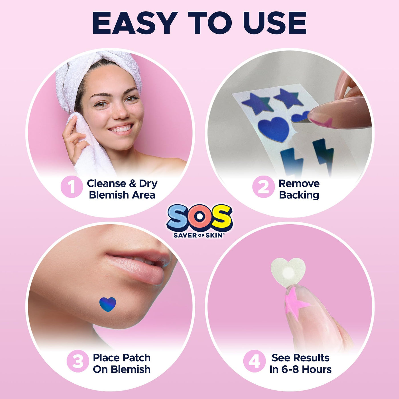 Sos Saver Of Skin Fun Shape Blemish Patches - Fast Acting Hydrocolloid For Pimples, Zits, Acne, And Face Blemishes - Latex-Free