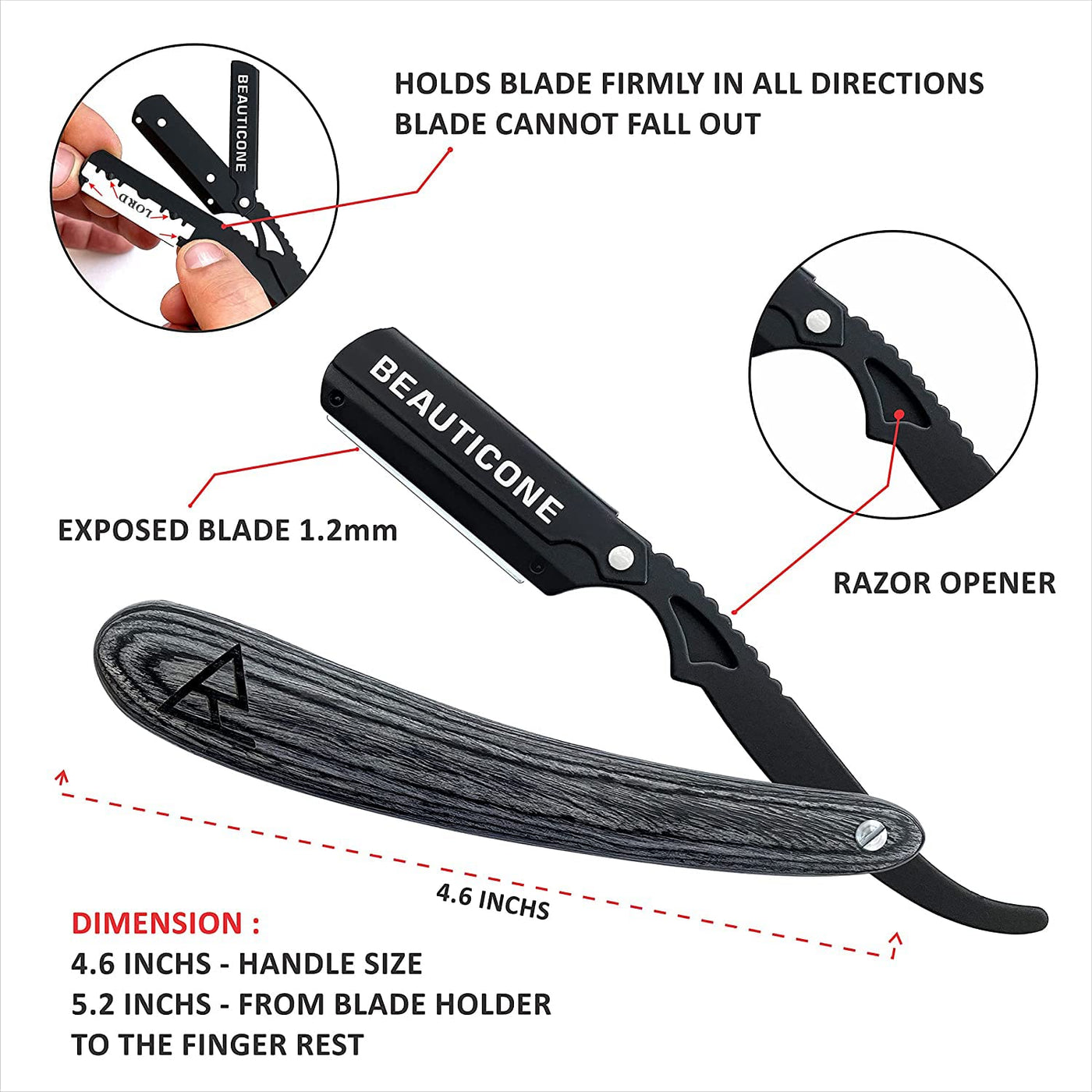 Beauticone Straight Razor For Men, Professional Barber Razor With 100 Single Edge Blades, Wooden Handle