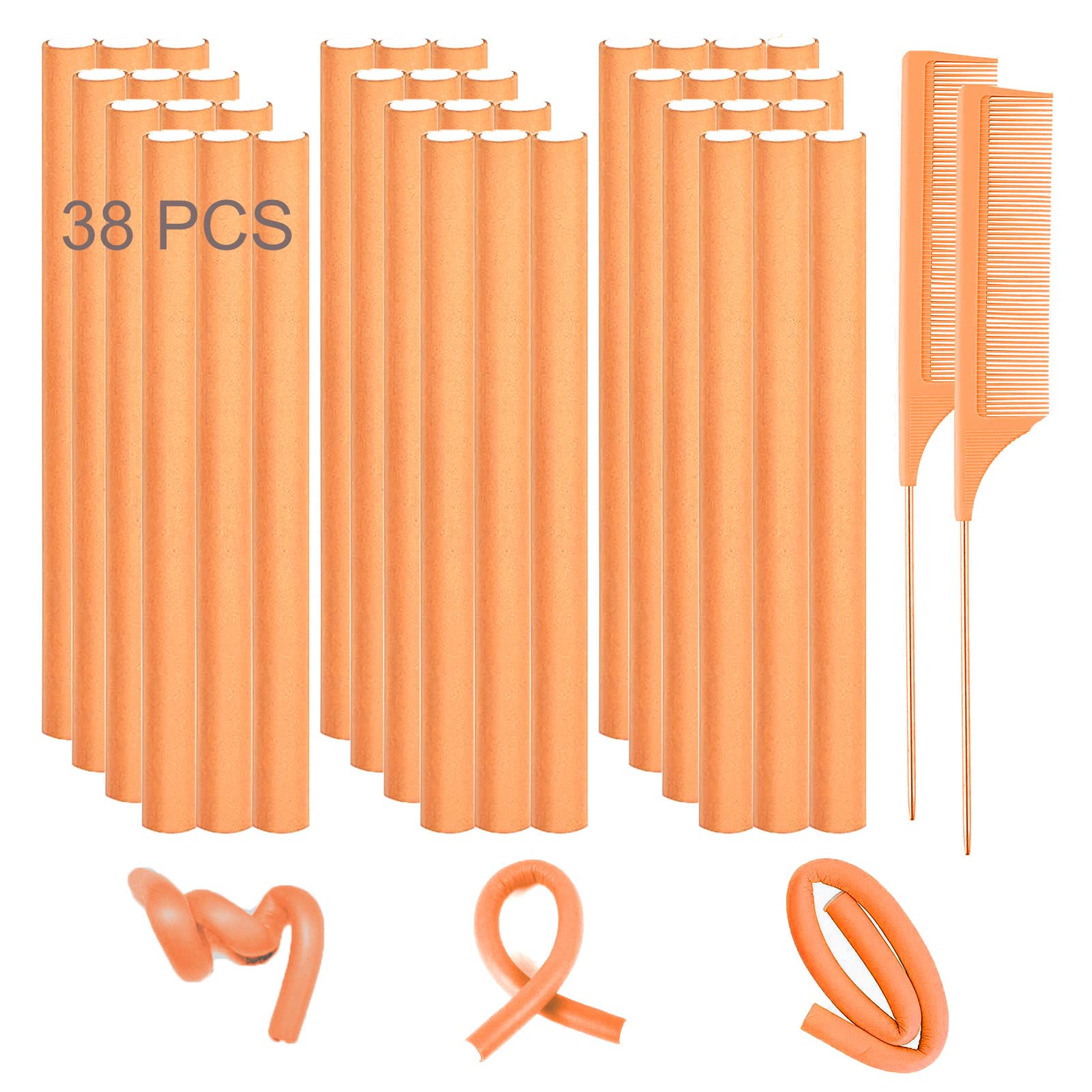 Flexible Hair Curlers, 38 Pcs 9.45'' Soft Foam Twist Rods For Long Hair, No Heat Overnight Curls & 2 Steel Pintail Combs