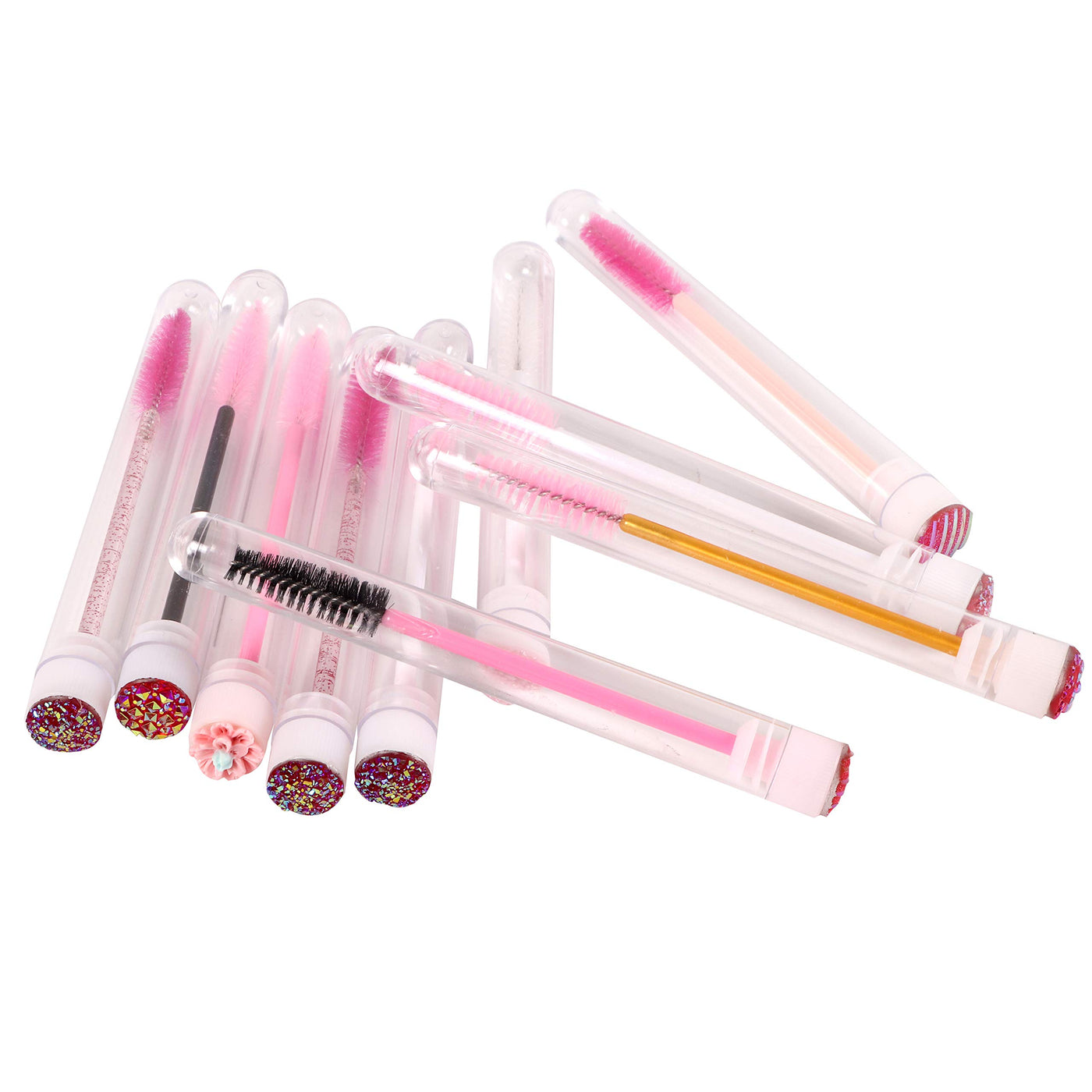 - Q: How many brushes are included in the package? A: The package includes a total of 60 pieces: 30 pink lash brushes with tubes and 30 pink glitter mascara brush replacements.