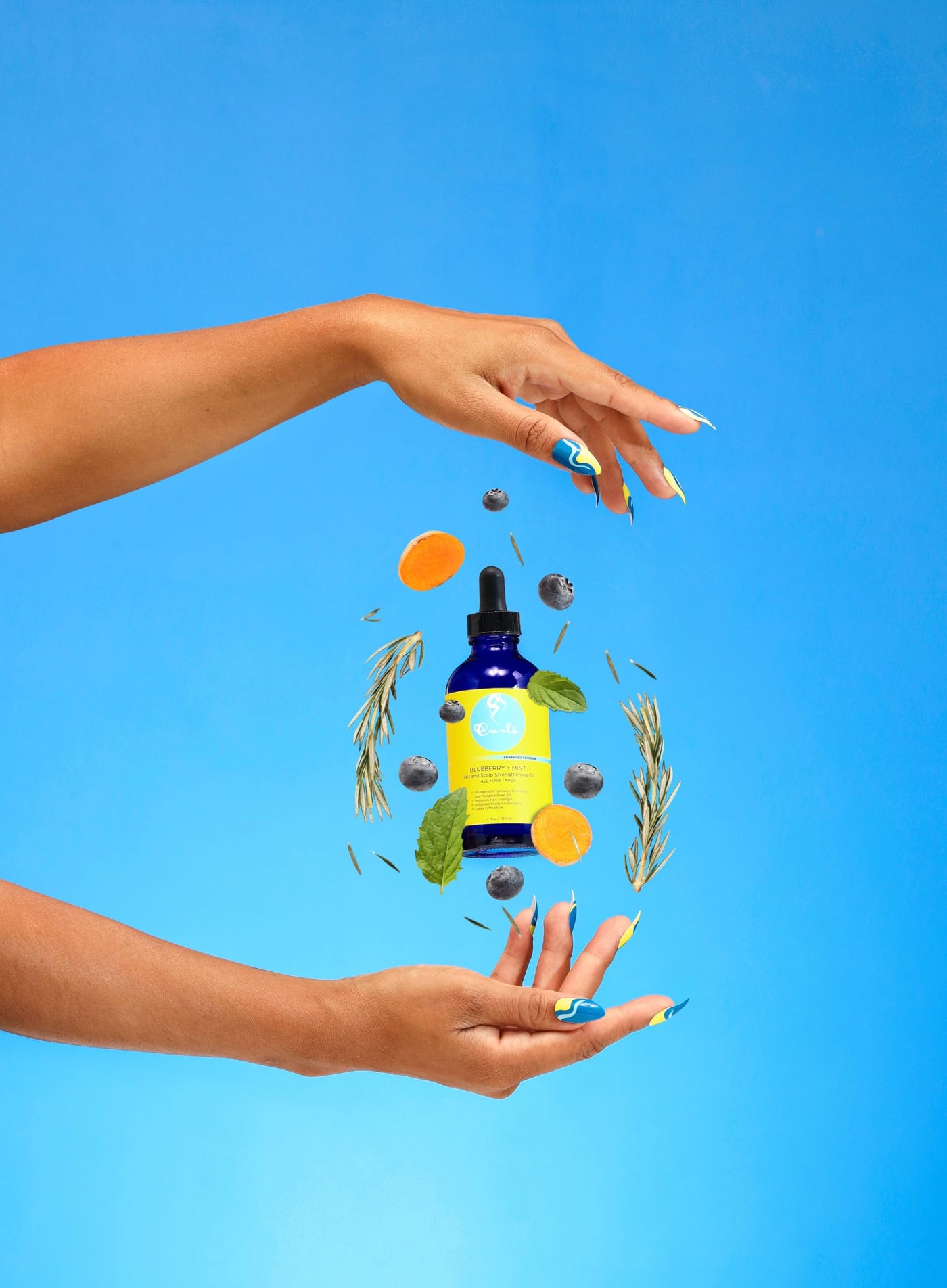 - Q: What are the main benefits of using Curls Blueberry Bliss Hair and Scalp Strengthening Oil? A: Curls Blueberry Bliss Hair and Scalp Strengthening Oil is designed to improve hair strength, enhance scalp conditioning, and lock in moisture. Infused with nourishing ingredients like turmeric, rosemary, blueberry seed oil, and pumpkin seed oil, it provides essential vitamins and antioxidants to protect and revitalize your curls.
