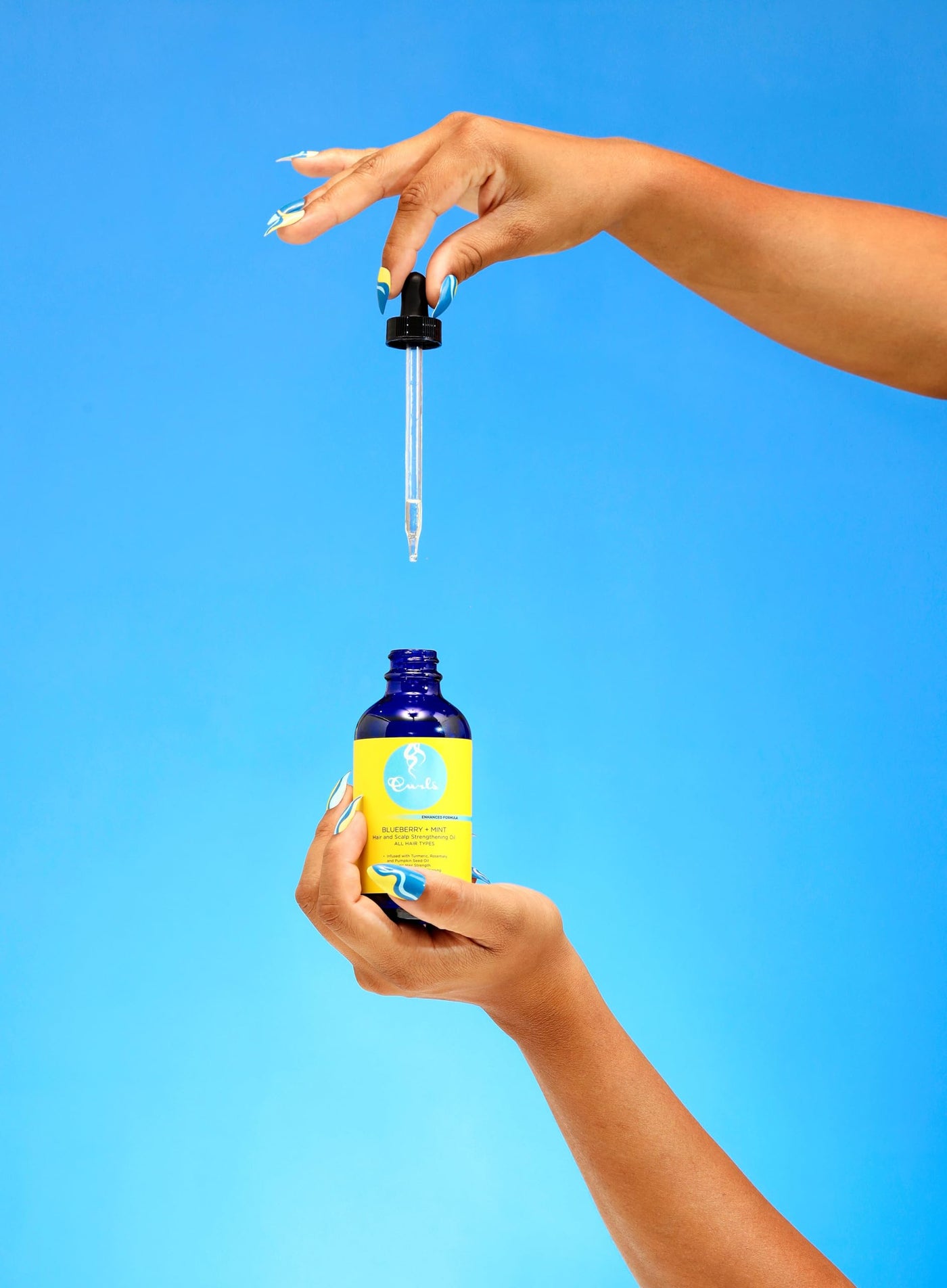 - Q: How should I apply the Curls Blueberry Bliss Hair and Scalp Strengthening Oil? A: To use, shake the bottle well before application. Apply daily to your scalp and massage gently to distribute the oil. You can also apply it to the ends of your hair for protection and length retention. No rinsing is required after application.
