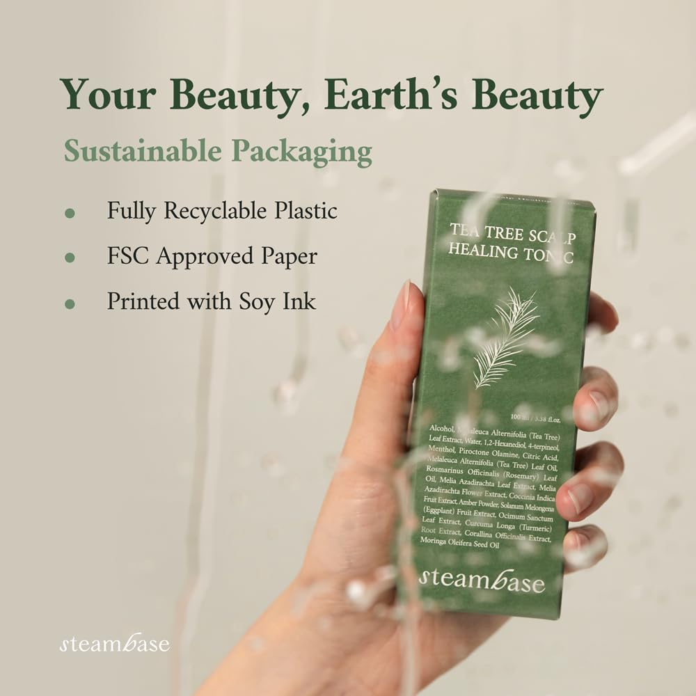 - Q: Can this tonic help with dandruff and scalp buildup? A: Yes, the STEAMBASE Tea Tree Scalp Healing Tonic is effective in managing dandruff and detoxifying the scalp. Its blend of natural ingredients helps to stimulate and protect the scalp while providing hydration and relief from irritation.