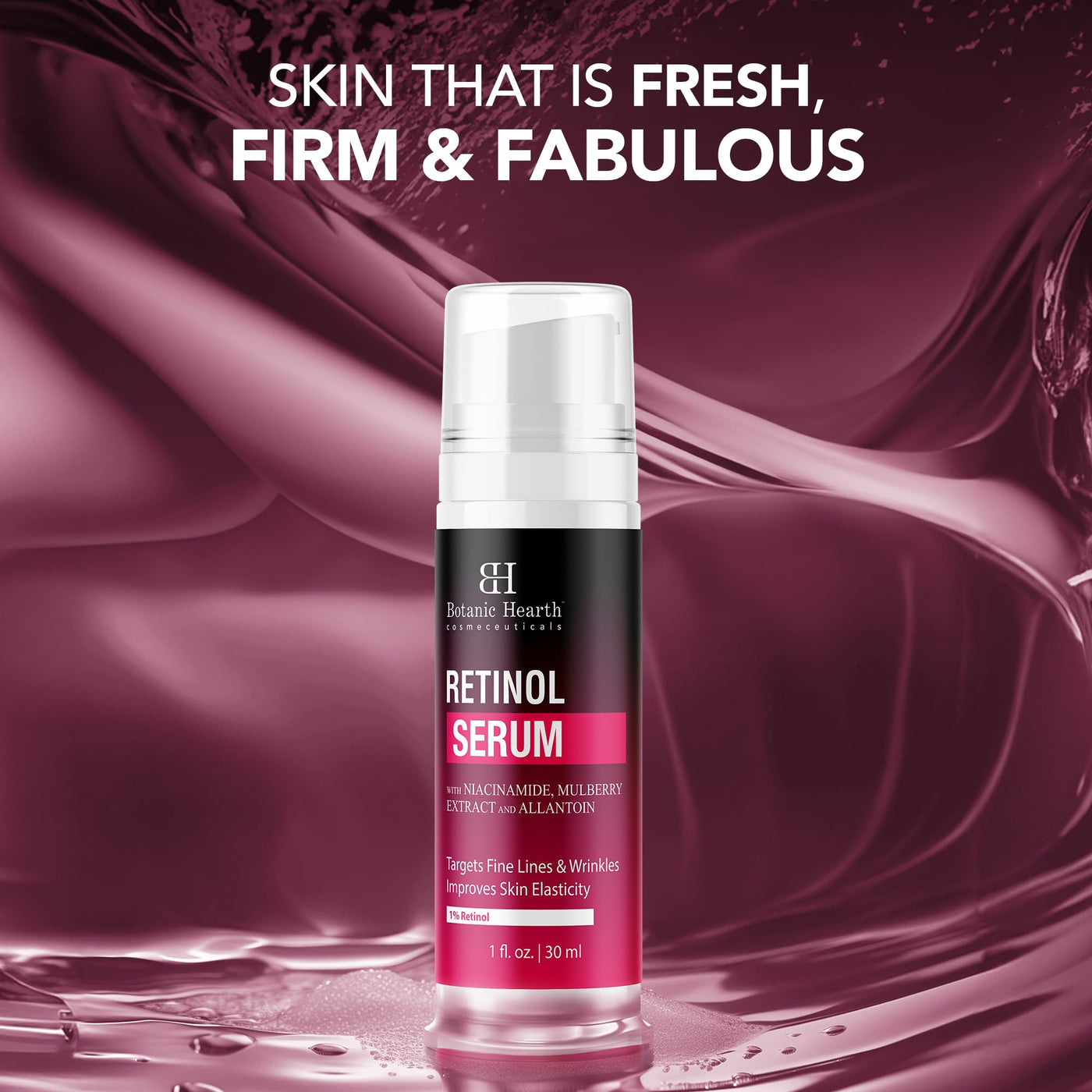 Botanic Hearth 1% Retinol Serum For Face With Niacinamide, Allantoin & Mulberry Extracts | Pore Refining & Brightening Face Seru