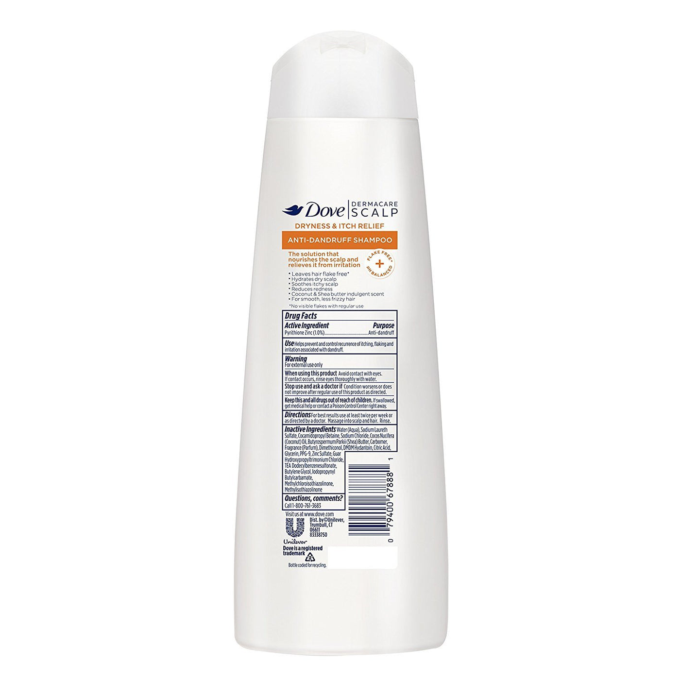 Dermacare Anti Dandruff Shampoo: Dove Dermacare Scalp Anti-Dandruff Shampoo Cleanses To Leave Hair Flake Free* *No Visible Flakes With Regular Use | Shampoo For Itchy Scalp: Dove Dermacare Anti-Dandruff Shampoo Works As A Dry Scalp Treatment To Hydrate And Sooth A Dry And Itchy Scalp | Hair Care For Scalp Relief: This Scalp Shampoo Cleanses And Nourishes To Reduce Scalp Redness And Relief Itchiness | Fragrant Dandruff Treatment: This Anti-Dandruff Shampoo Delivers The Fragrant And Indulgent Aroma Of Coconut And Shea Butter | Ph Balanced Hair Products: Dove Dermacare Scalp Anti-Dandruff Shampoo Has A Ph Balanced Dry Scalp Shampoo Formula | Dandruff Shampoo For Frizz Control: Besides Tackling Flakes, This Anti-Dandruff Shampoo Smooths Strands For Less Frizzy Hair