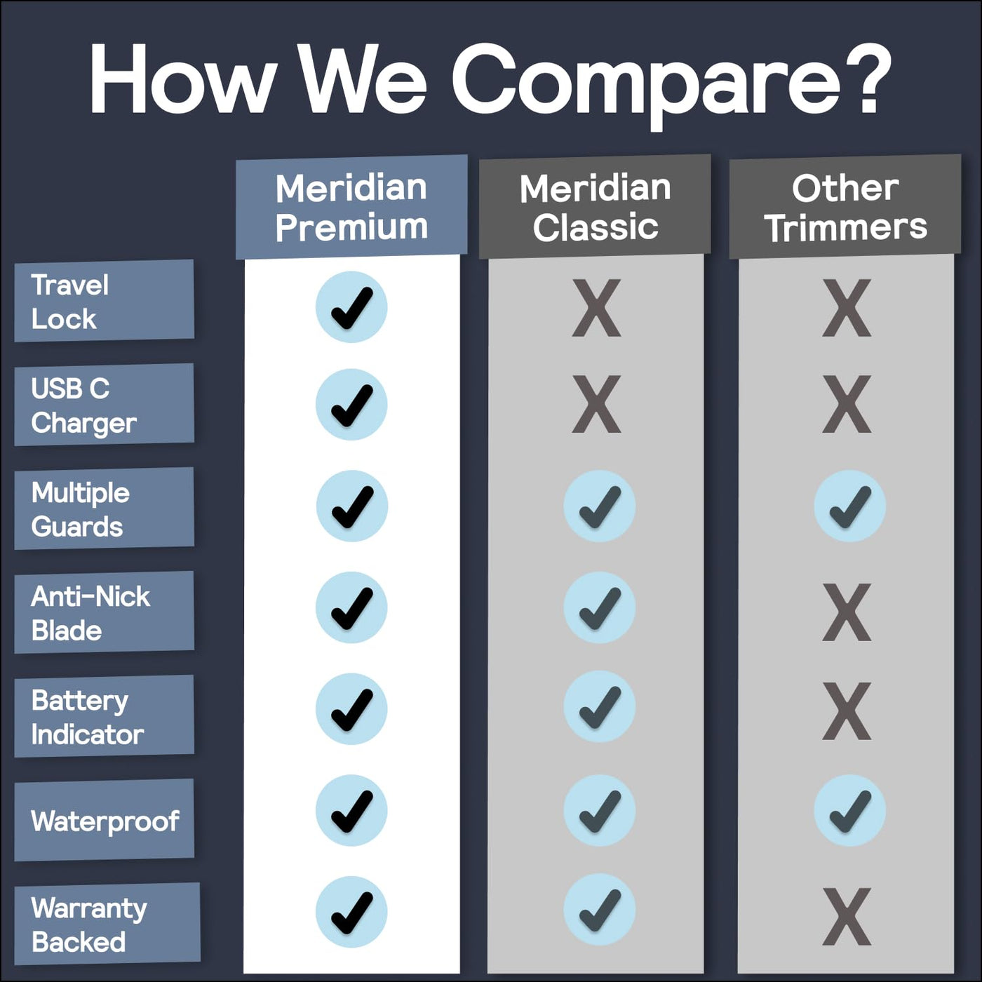 Meridian Premium Trimmer For Men And Women, Usb C Charging, Travel Lock, 6 Colors Available, Solar