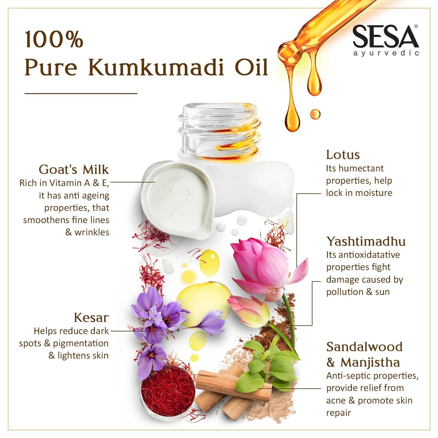 Sesa Kumkumadi Face Oil With Pure Saffron And Ayurvedic Herbs - 100% Pure Kumkumadi Tailam Moisturise Skin Helps Smoothen Fine L