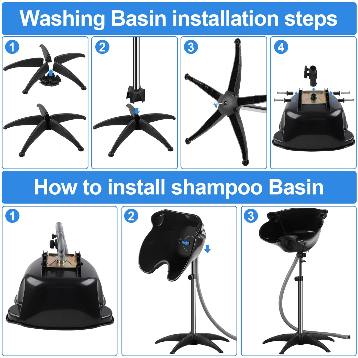 Portable Shampoo Bowl, Salon Deep Shampoo Basin Sink Hair With Drain Hose, Height & Angle Adjustable Washing Bowl For For Home S