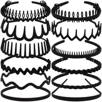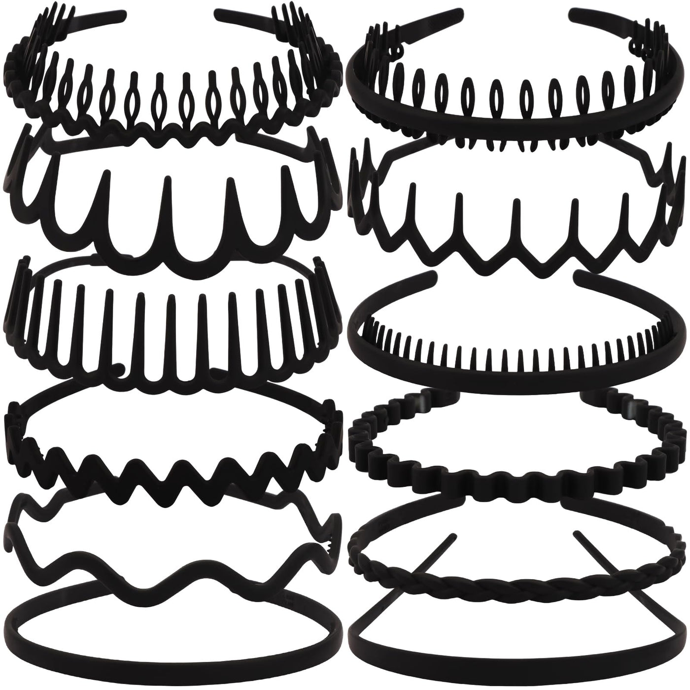 Tobatoba 12Pcs Black Headbands For Women With Teeth Plastic Head Bands For Women'S Hair Non Slip Comb Skinny Zig Zag Headbands F