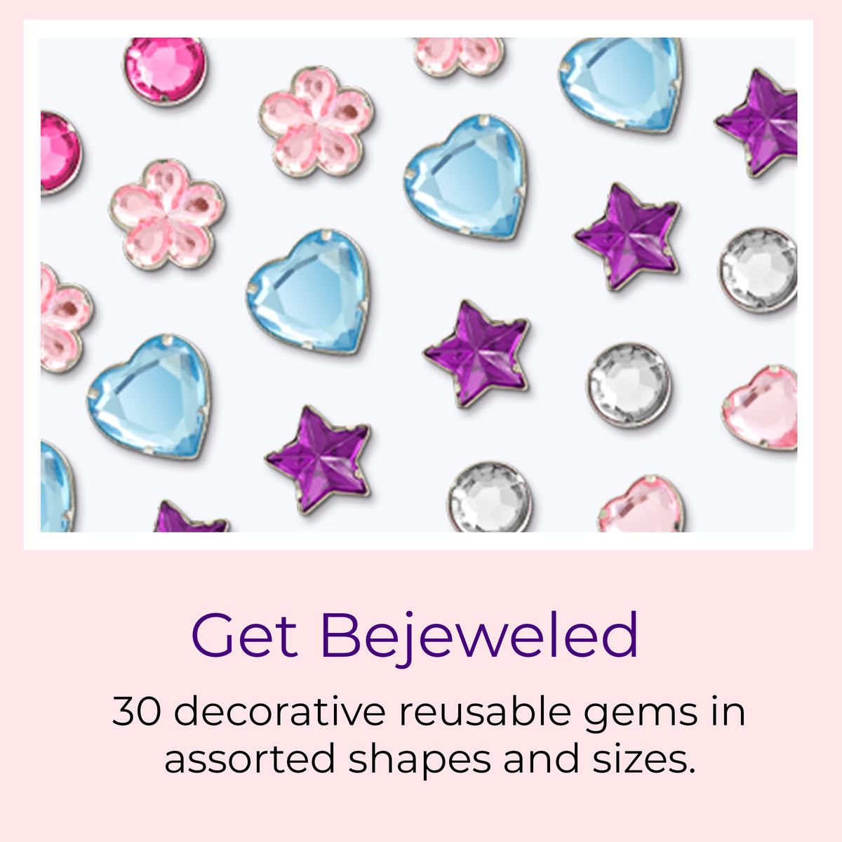 - Q: Are the gems reusable and how many come with the set? A: Yes, the gems included with the Conair Quick Gems Hair Jeweler are reusable. The set comes with 30 decorative gems in various shapes, including hearts, circles, and flowers, allowing you to create unique and fun hairstyles multiple times.