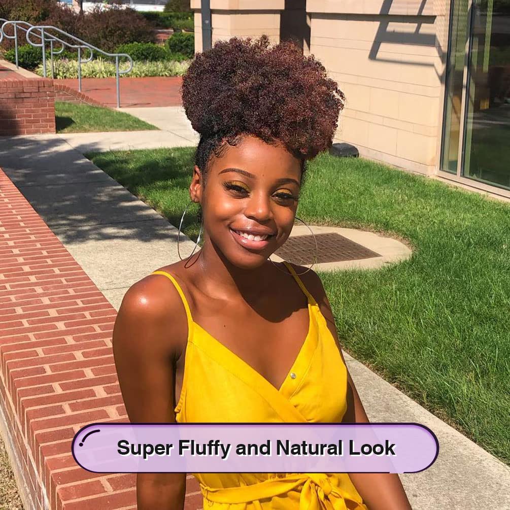 YEAME Afro Puff Drawstring Ponytail for Black Women, Ombre Burgundy Kinky Curly Synthetic Hair, 1 Count