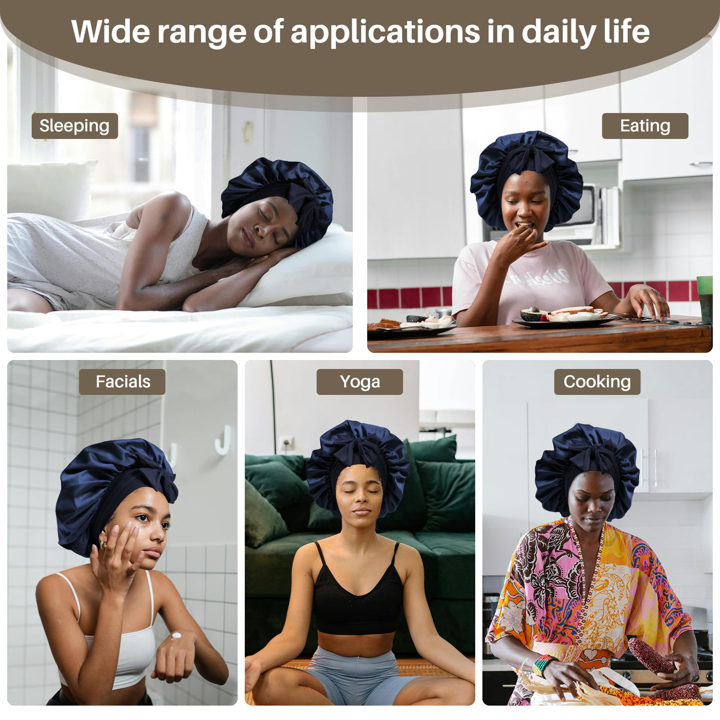Embrace The Comfort And Style Of Kujuha Sleeping Bonnet, Designed Uniquely For Women Looking For A Perfect Sleep Companion For Their Hair. Crafted From Premium Double-Layered High-Quality Materials, This Hair Bonnet For Curly Hair Offers The Ultimate Comfort And Hair Protection, Retaining The Hair'S Moisture And Preventing Breakage And Frizz.Our Bonnet'S Extra-Large Size Ensures That It Can Cover All Hair Types, From Braids And Curls To Weaves And Waves. So, Whether You Have Long Hair, Dry Or Tangled Hair, Perms, African Styles, Buns, Or Short Hair, Our Hair Bonnets For Women Guarantees To Keep Your Hairstyle Intact Throughout The Night.Experience The Versatility Of Our Satin Sleep Bonnet, Which Is Not Just An Excellent Accessory For Sleep, But Also Ideal For Various Activities Like Housework, Makeup, Fitness, Running, And Yoga. Its Tie Band Can Be Styled Into A Beautiful Butterfly Knot, Adding A Stylish Touch.Trust In Kujuha For Your Hair Protection And Style, And Experience The Perfect Blend Of Comfort And Elegance With Our Satin Sleep Bonnet Today!