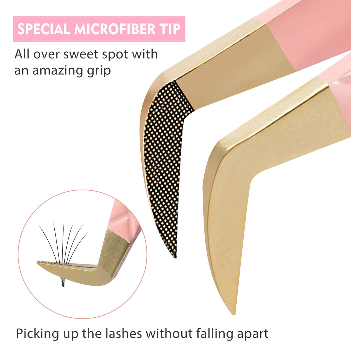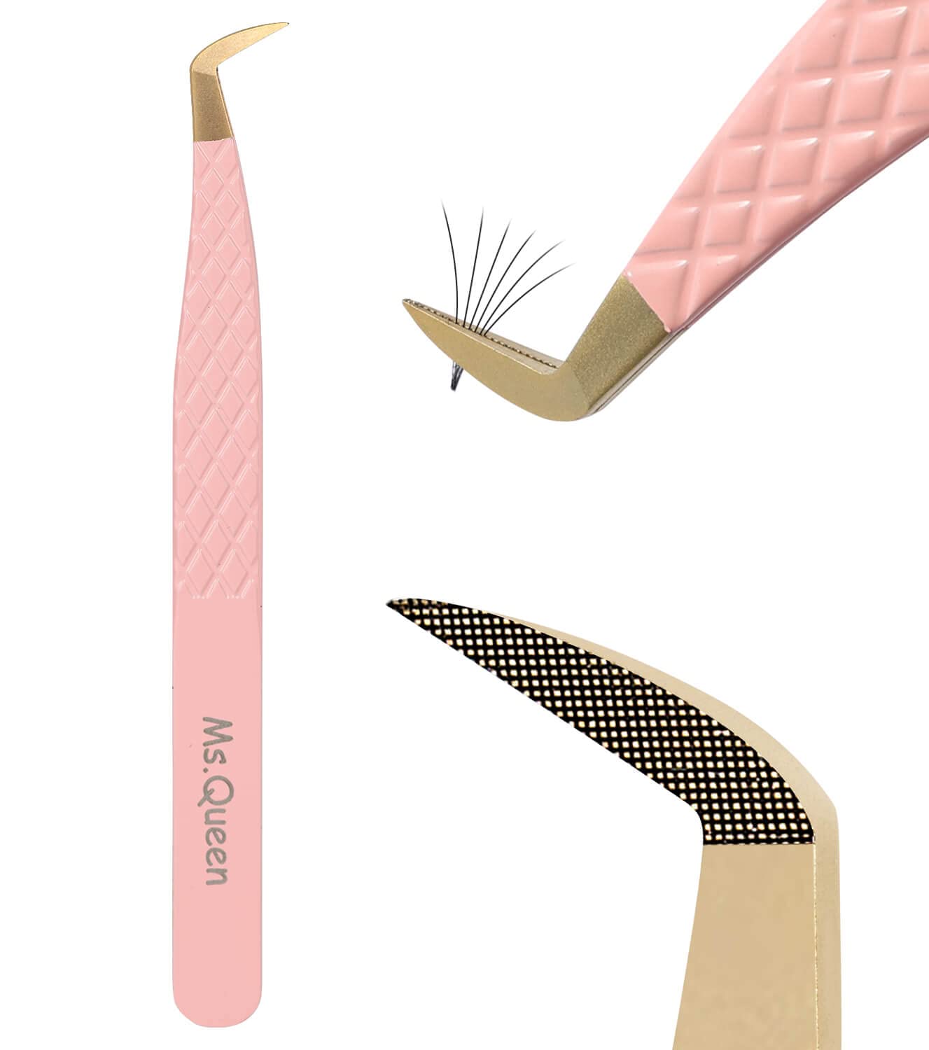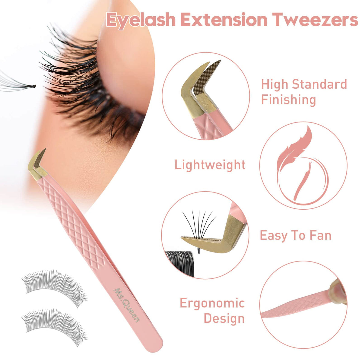 Ms.Queen Lash Tweezers For Eyelash Extensions,Fiber Tip Eyelash Tweezers For Mink Lashes Fan Making Mega Volume Boot Lashing Twe