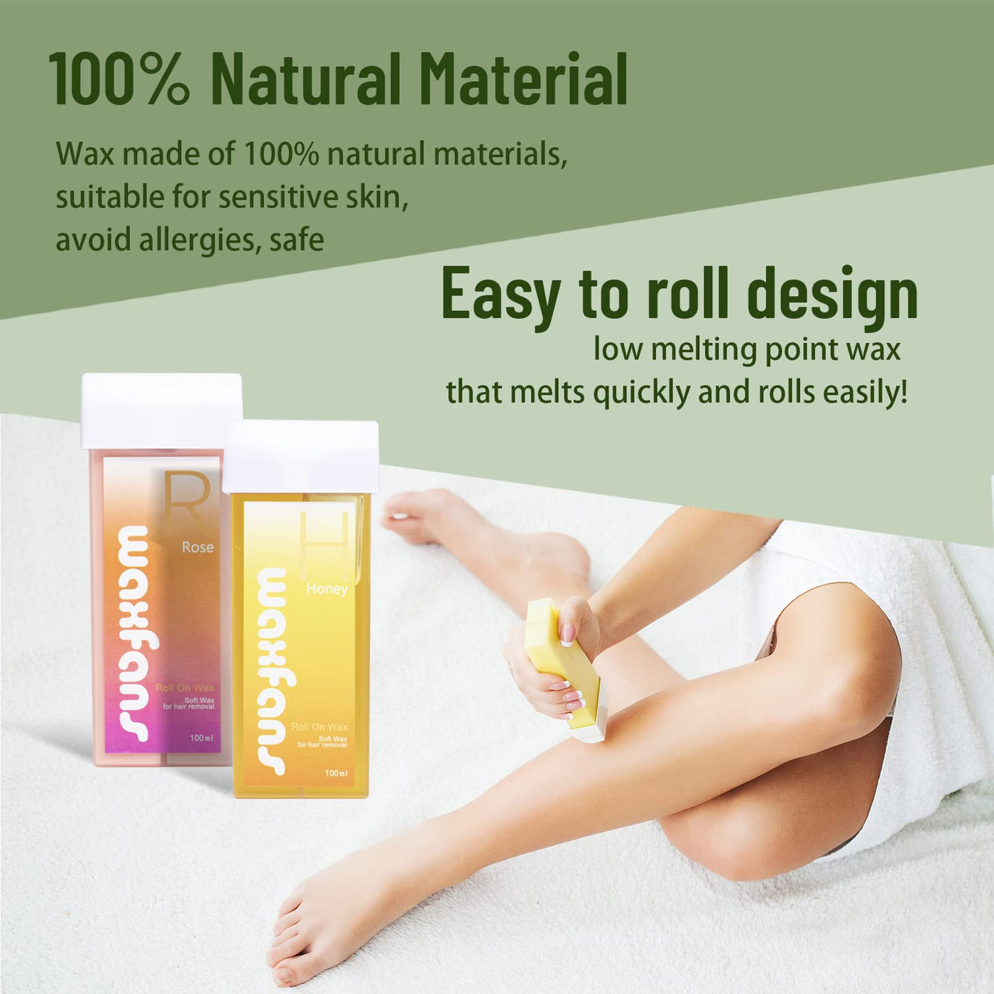 Waxfans Roll On Wax Kit, Hair Removal Waxing Kit, Wax Roller For Larger Areas Of The Body, Home Waxing Kit For Women And Men, Se
