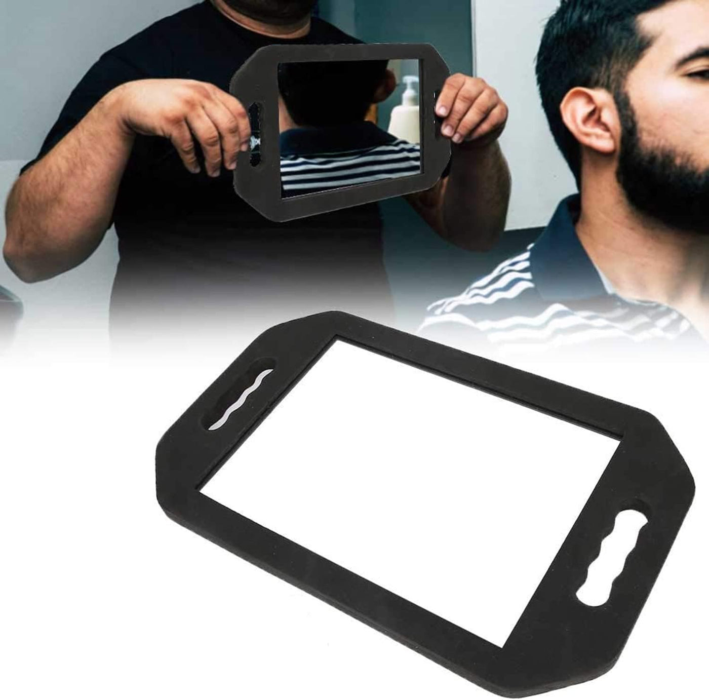 Handle Mirror, Large Hand Mirror with Double Handle,Rectangular Hand Held Mirror with Handle, Lightweight Hair Salon Equipment H