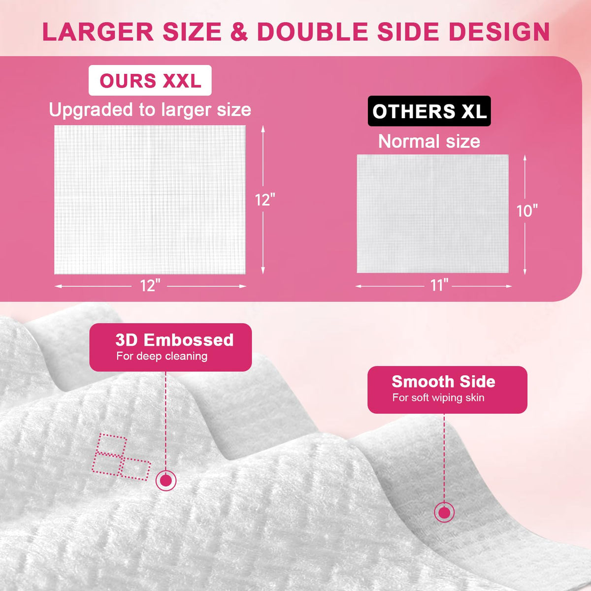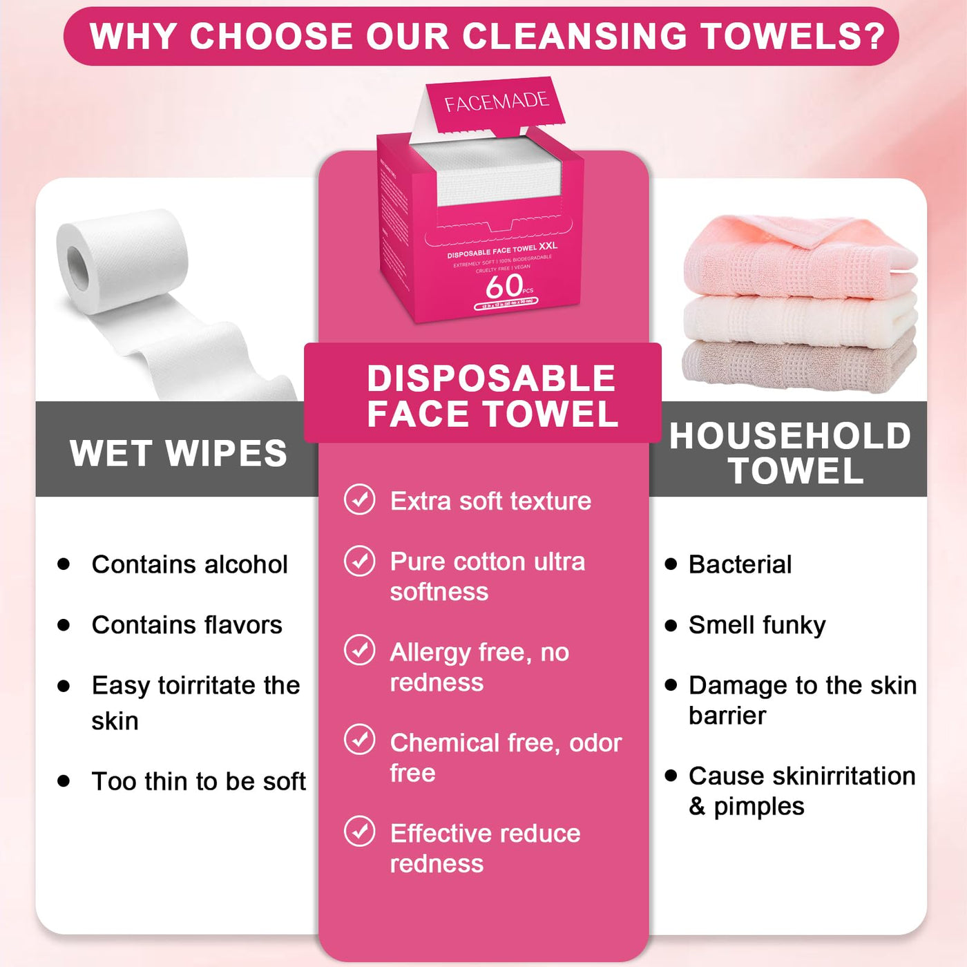 Facemade 60 Ct Disposable Face Towels Xxl, Face Towelettes For Makeup And Clean, Super Soft And Thick Dry Wipes, Usda Certified