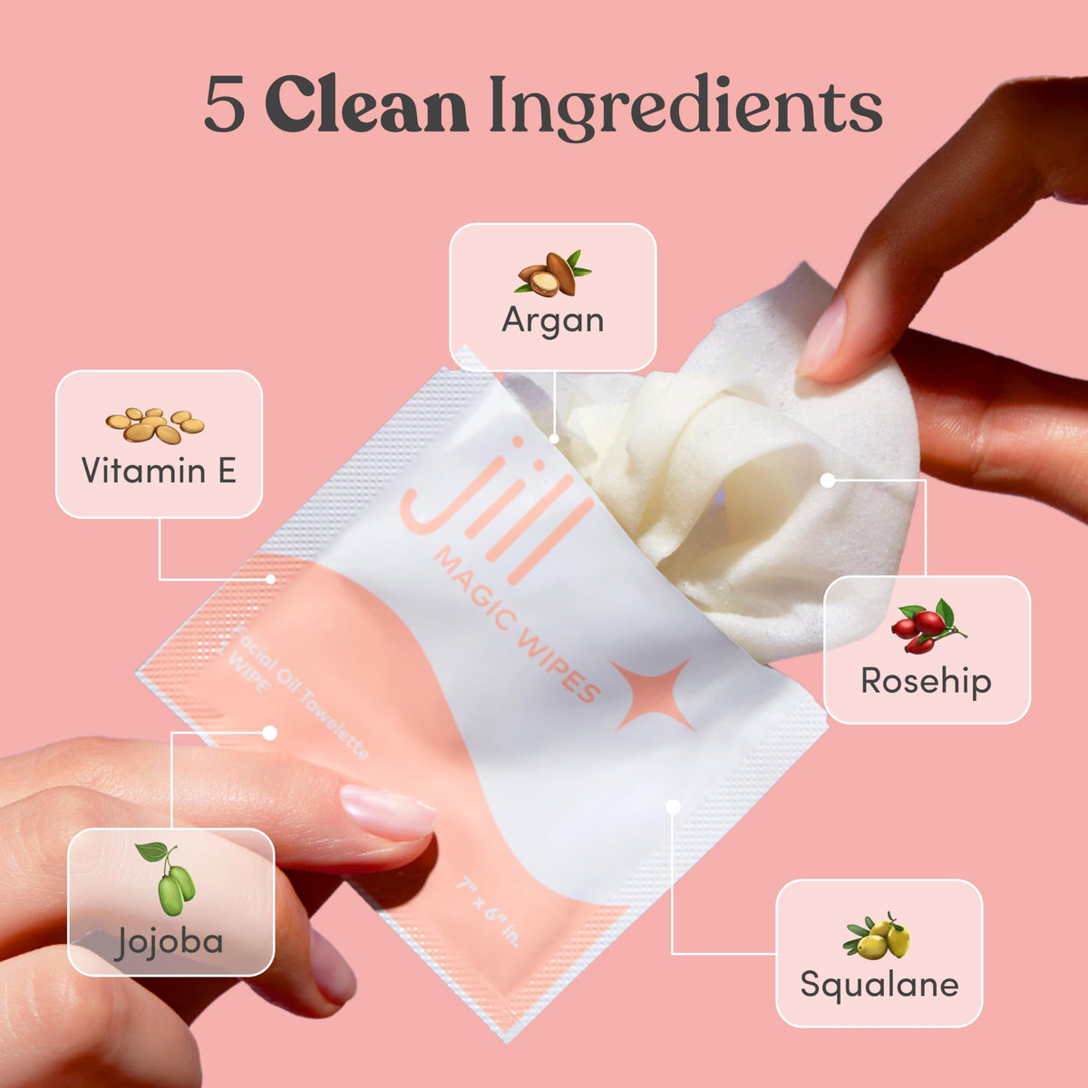 Jill Magic Wipes Pre Shave Dermaplane Oil Wipes For Face 6 Pack | Step 1 To Dermaplane Kit By Jill | Vitamin E, Squalane, Argan