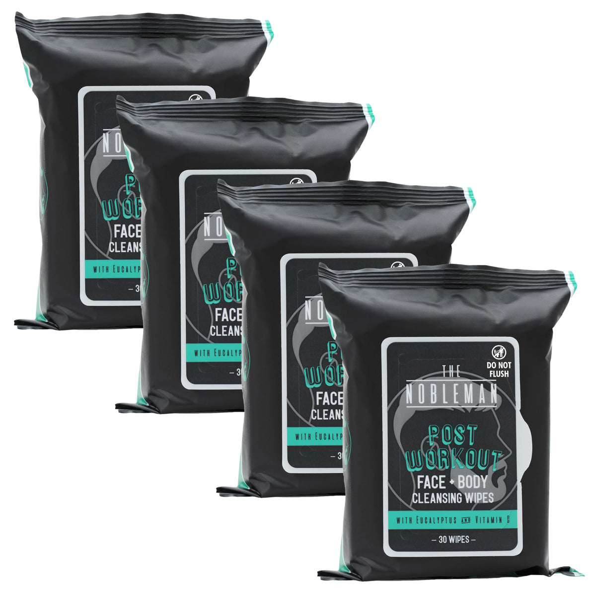 The Nobleman 4-Pack Face + Body Cleansing Wipes: 4 Post Workout Packs with Eucalyptus and Vitamin C (120 Ct.)