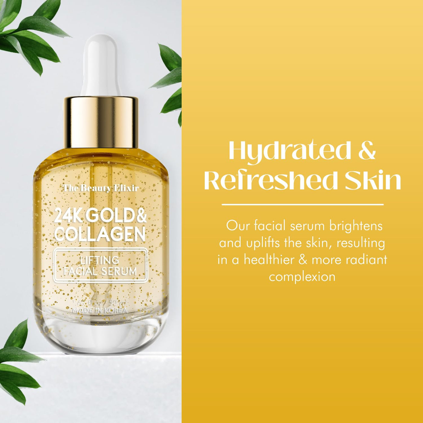 - Q: How should I apply the Beauty Elixir serum for the best results? A: For optimal results, apply the Beauty Elixir 24K Gold & Collagen Serum after cleansing and toning your face. Use a few drops and gently pat it into your skin using your fingertips, focusing on areas that require extra hydration or show signs of aging. Follow up with your favorite moisturizer.
